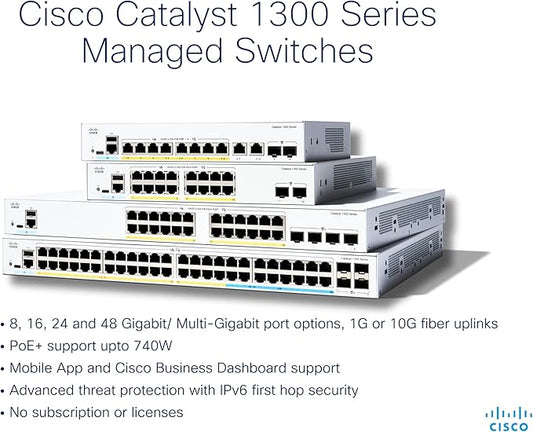 Cisco Catalyst 1300-48MGP-4X Managed Switch, 32 Port GE, 16 Port 2.5GE, PoE, 4x10GE SFP+, Limited Lifetime Protection (C1300-48MGP-4X)